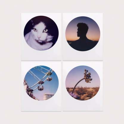 Create outside the box. 8 color instant photographs with a round frame to flex your imagination. An absolute fan favorite from the moment it was released in 2014, our Color 600 Round Frame Film lets you flex your imagination and be a little less... square. 8 color instant photographs with a round frame per pack. Compatible with the Polaroid I-2, Now, Now+, Lab, OneStep 2, and OneStep+.