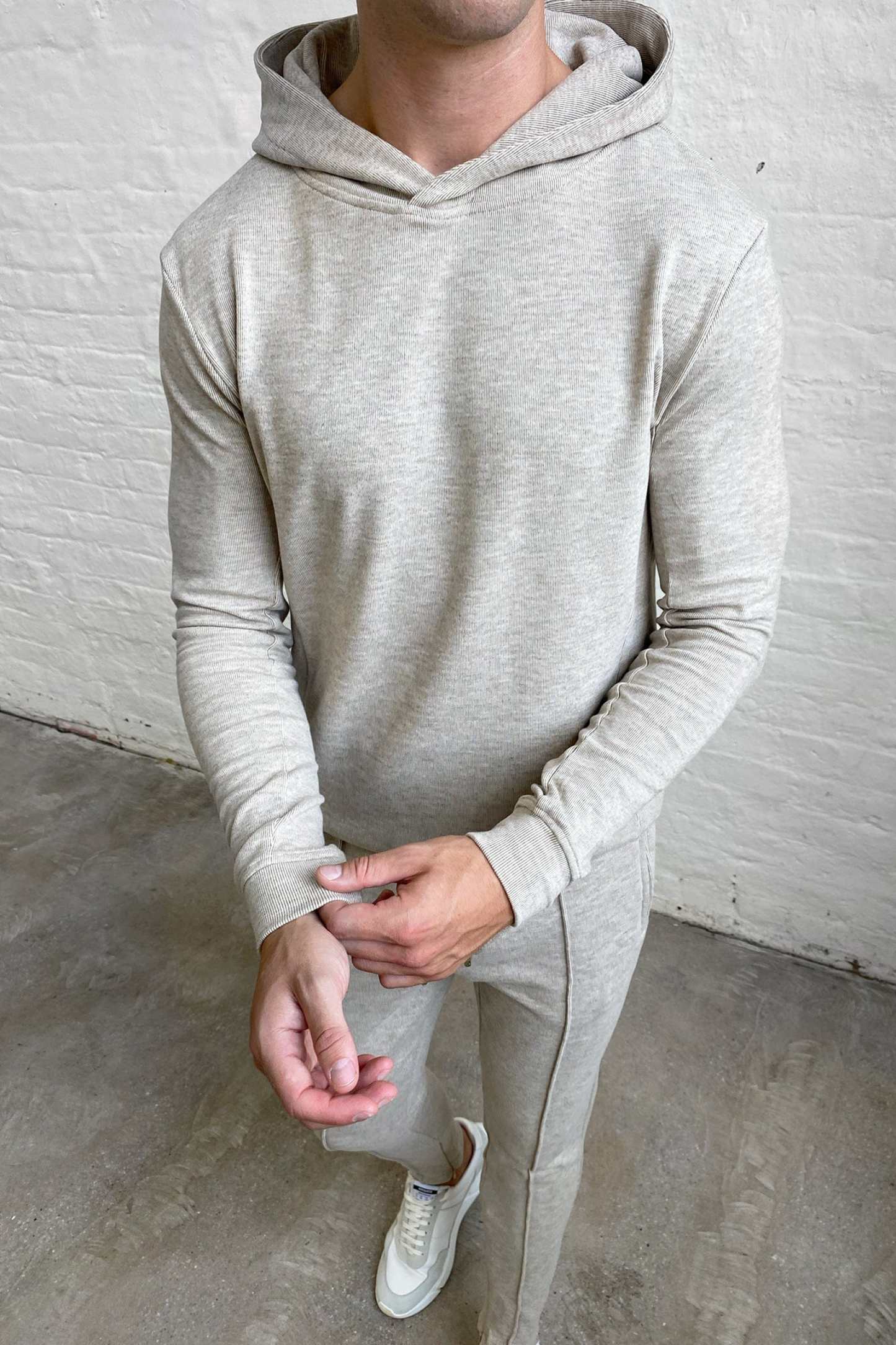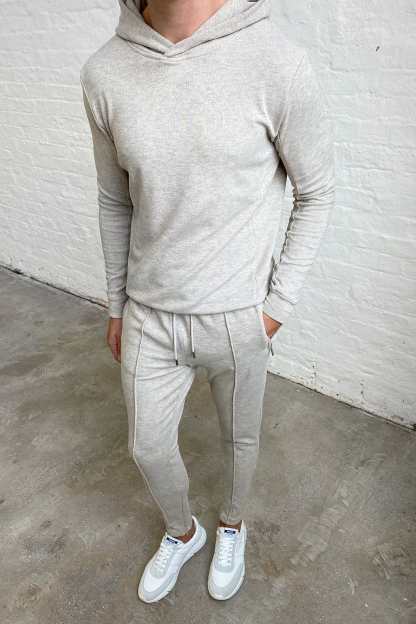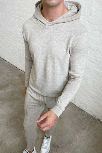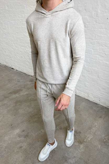 The Knitted Hoodie embodies meticulous craftsmanship, boasting a gentle knit outer layer paired with a luxuriously soft brushed fleece interior. Its panelled design imparts a sense of structural refinement to its overall aesthetic. For a sophisticated winter ensemble, pair with the matching Knit Pant.