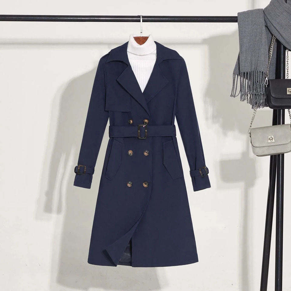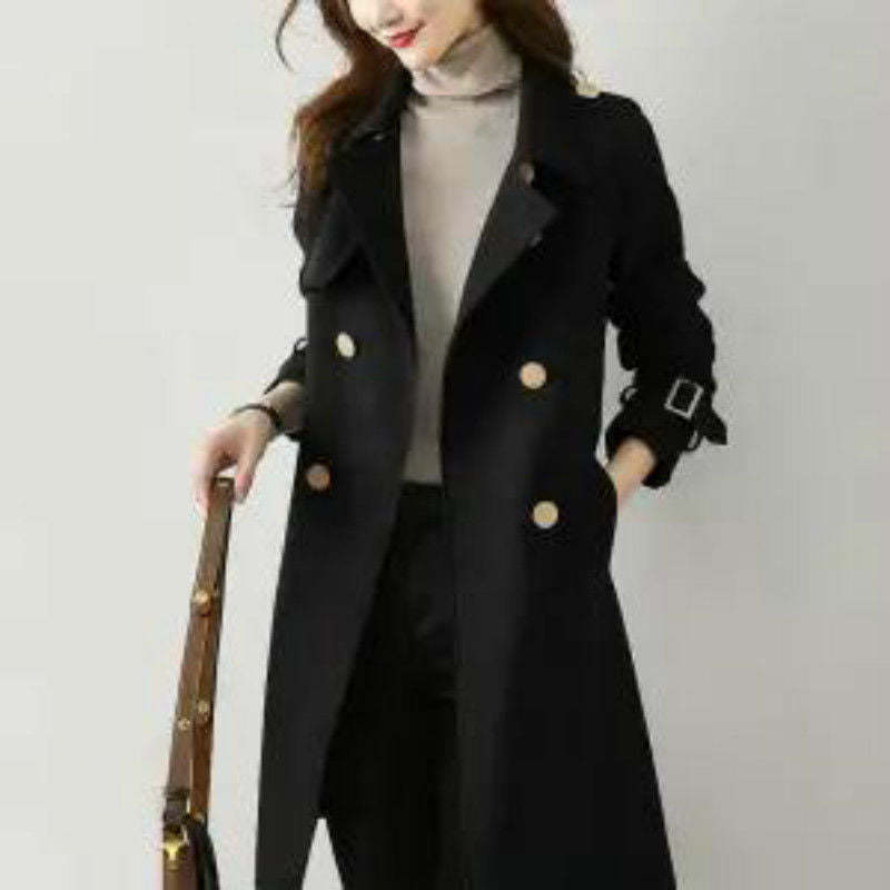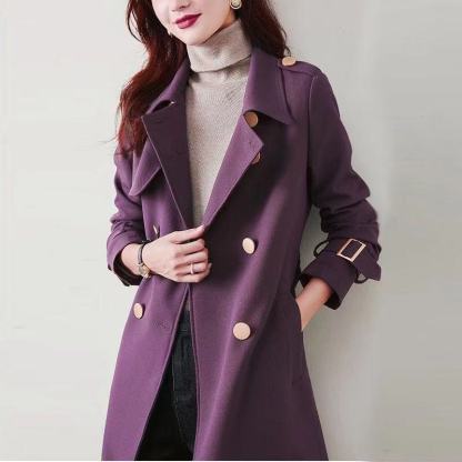 Women's Mid-length Double-breasted Thin Windbreaker Jacket