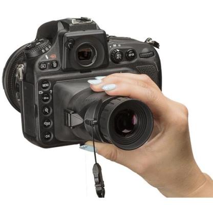 Checking composition, focus and your histogram outdoors is easy with a HoodLoupe. HoodLoupe is worn around your neck. To review images, glare-free, place HoodLoupe over your LCD. HoodLoupe's +/- 3 diopter adjustment accommodates those with less than perfect vision; turn the eyepiece in or out to set your vision. Precise glass optics give you a bright, clear and non-pixelated image to view. The new 3 lens optical module accepts multiple mounting bases. Should your LCD size change, you just need to buy the HoodLoupe base that fits your new LCD. To save space, the optical module separates from the base which will nest over the optical module and fit snuggly in its carry bag. HoodLoupe integrates with all Hoodman live view mounting plates for hands-free use. The neck lanyard provided can be upgraded to a retractable lanyard that clips to your belt.Compatibility