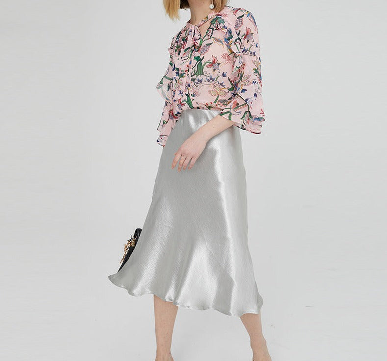 Medium-length A-line skirt texture skirt