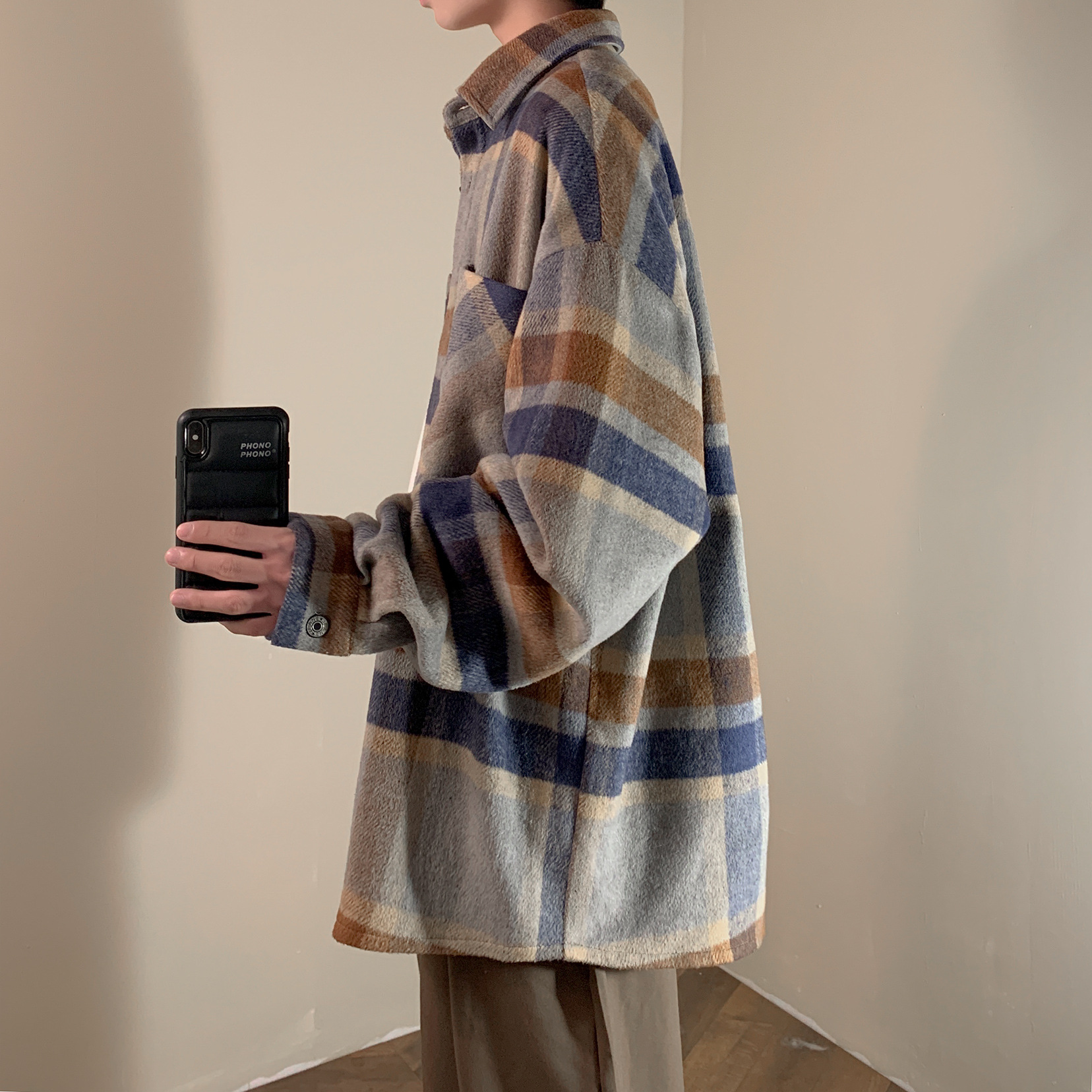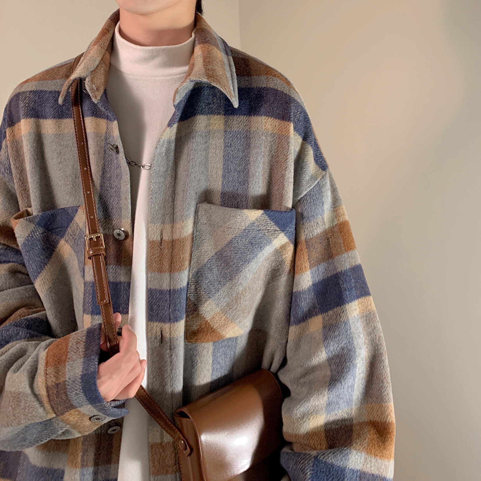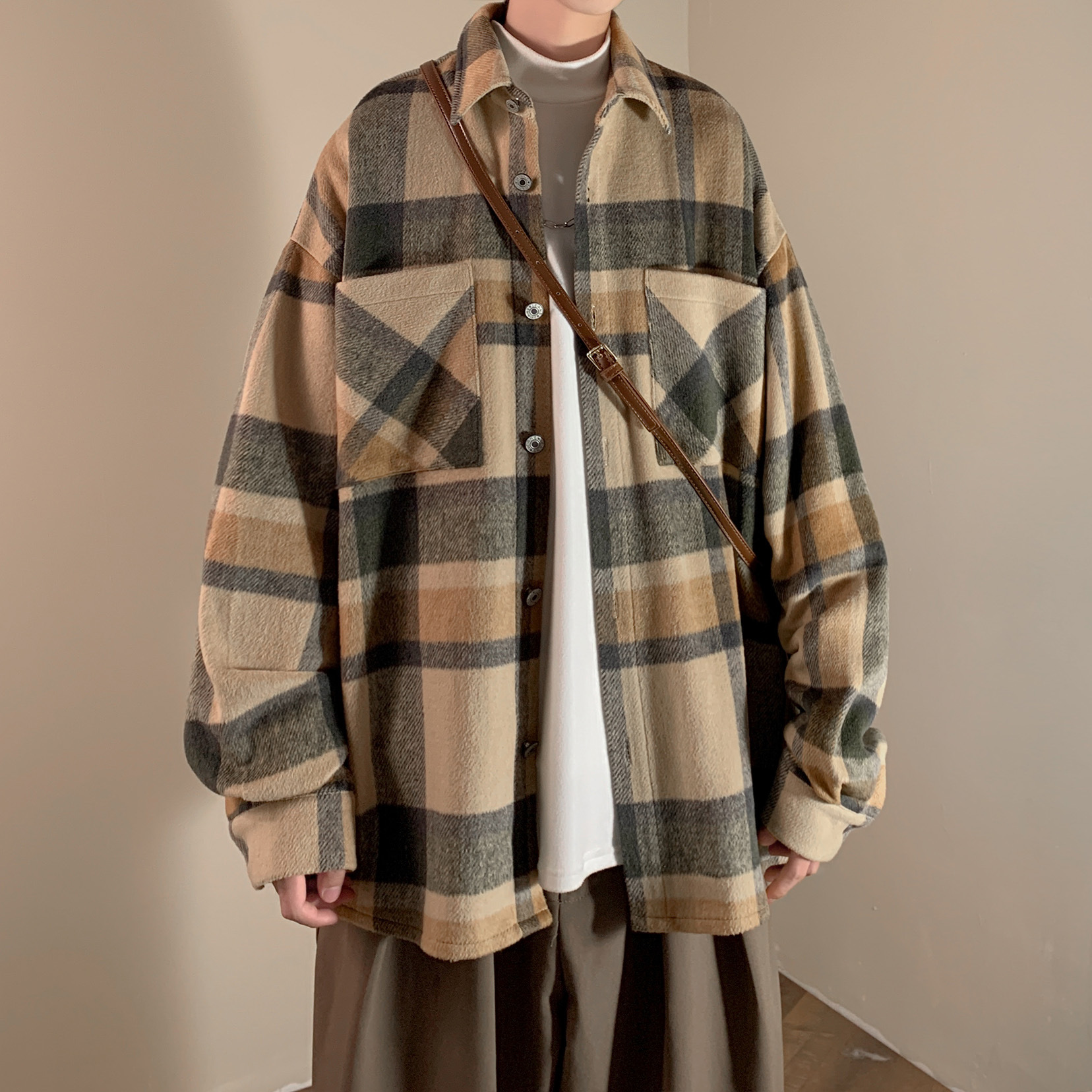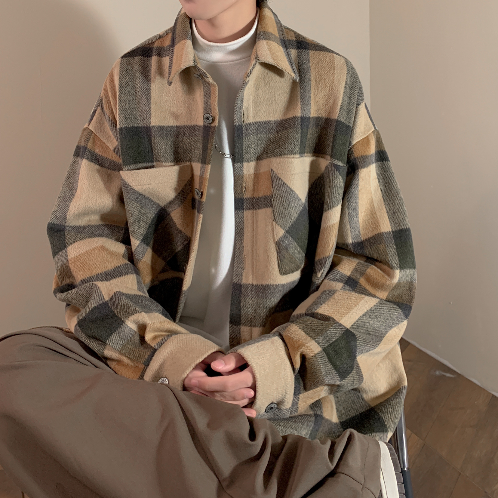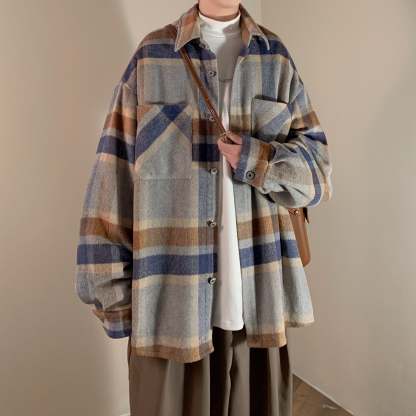 Vintage Brushed Plaid Shirt Fashion Jacket
